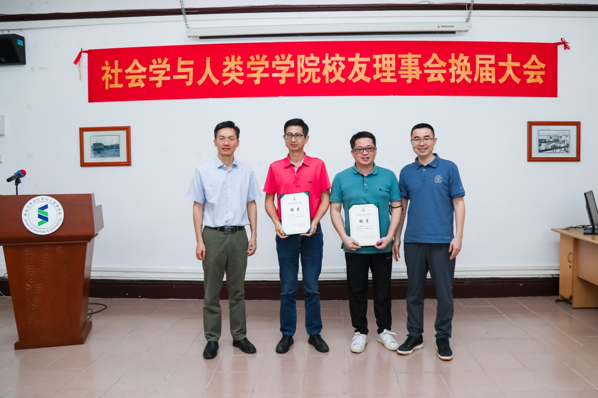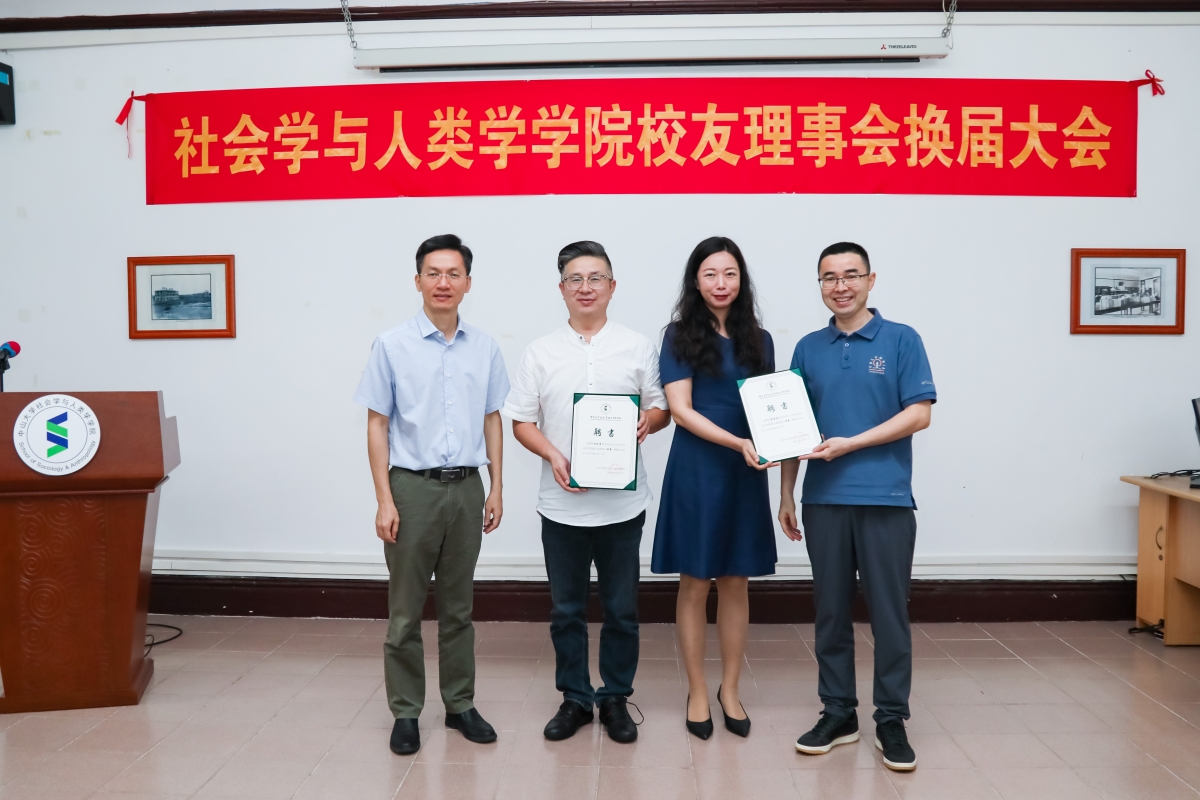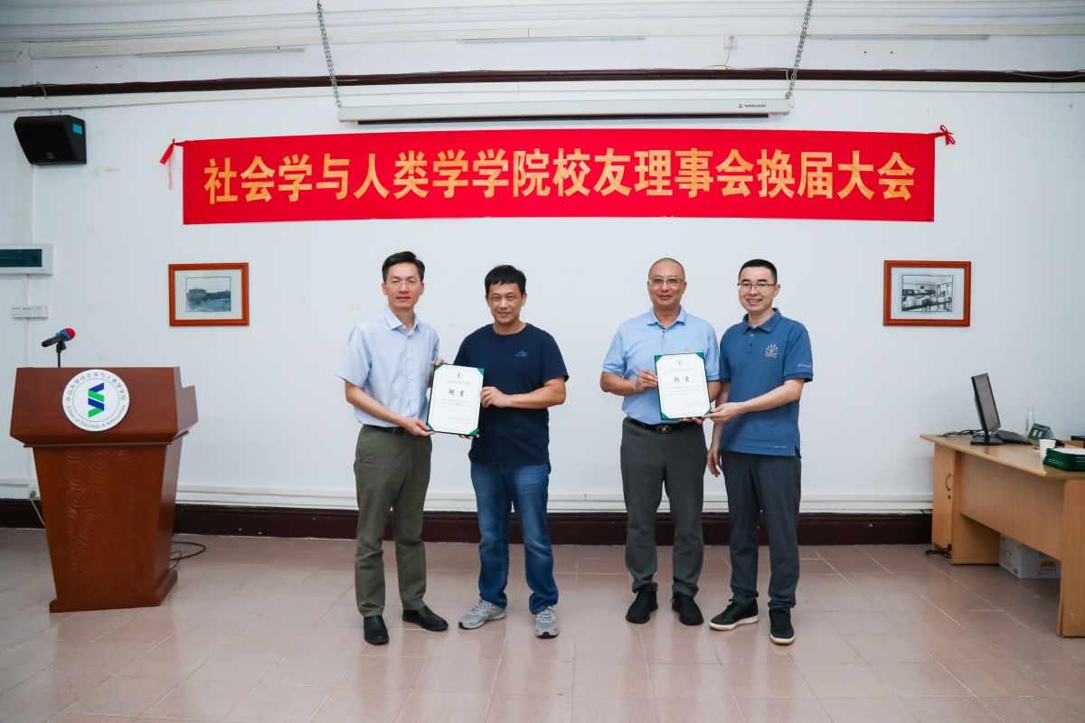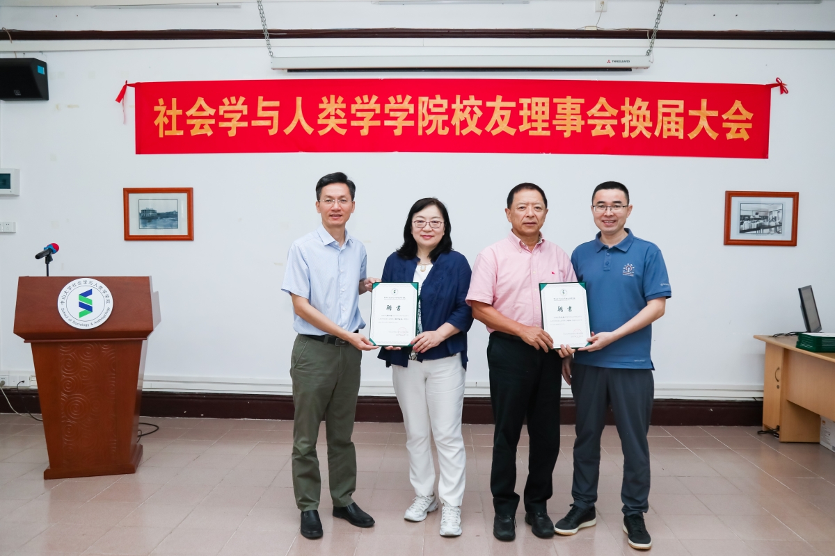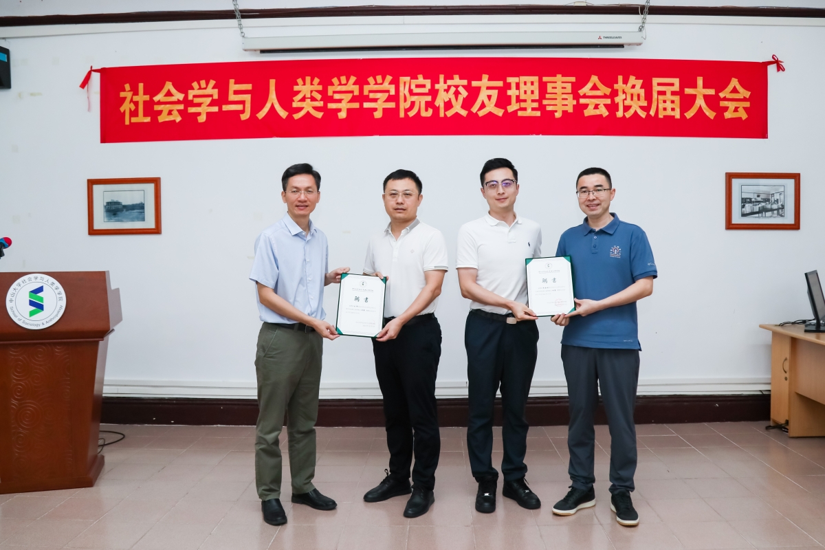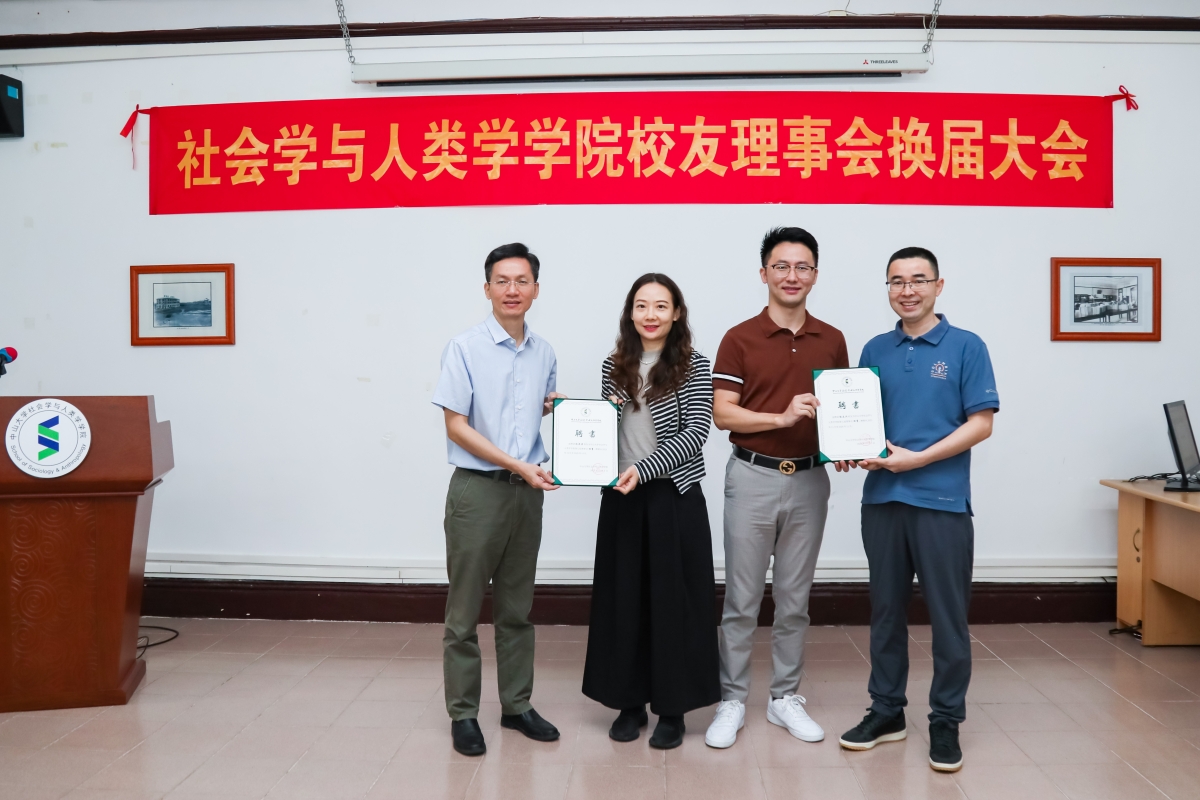 会议通过了新一届校友理事会成员名单,陈险峰书记和余成普院长为到会校友理事颁发聘书。