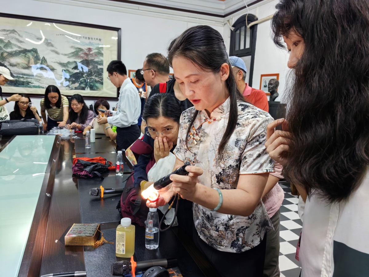 本次活动邀请到广东省文物鉴定站副站长赵敏研究馆员,为大家讲授玉石知识、介绍鉴赏玉石材质与辨别玉石真伪的方法。讲座设置了理论讲解与实践操作两个环节,与会教职工亲自观察和操作,加深了对玉石材质的理解和提升鉴赏能力,愉悦了身心,提高了审美。