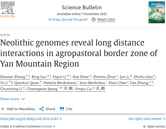2025117日,Science Bulletin(《科学通报》英文版)刊发了由吉林大学崔银秋教授和太阳成集团tyc33455cc李法军教授等组成的国际团队最新研究成果,题为Neolithic genomes reveal long distance interactions in agropastoral border zone of Yan Mountain Region”(《燕山地区农牧混交带新石器时代基因组揭示长距离人群互动历史》)。该研究最重要的突破在于,通过分析42个距今7700-4300年的古代基因组数据,揭示了燕山地区新石器时代精细的人口历史,从基因水平上将该地区新石器时代早期人群和同时期贝加尔湖人群联系起来填补了红山文化和夏家店下层文化之间的古老基因组分析空白。该研究强化了欧亚草原人群与中国北方农业人群之间存在悠久互动历史的观点,强调了燕山地区是黄河西辽河地区间史前人群互动的关键区域