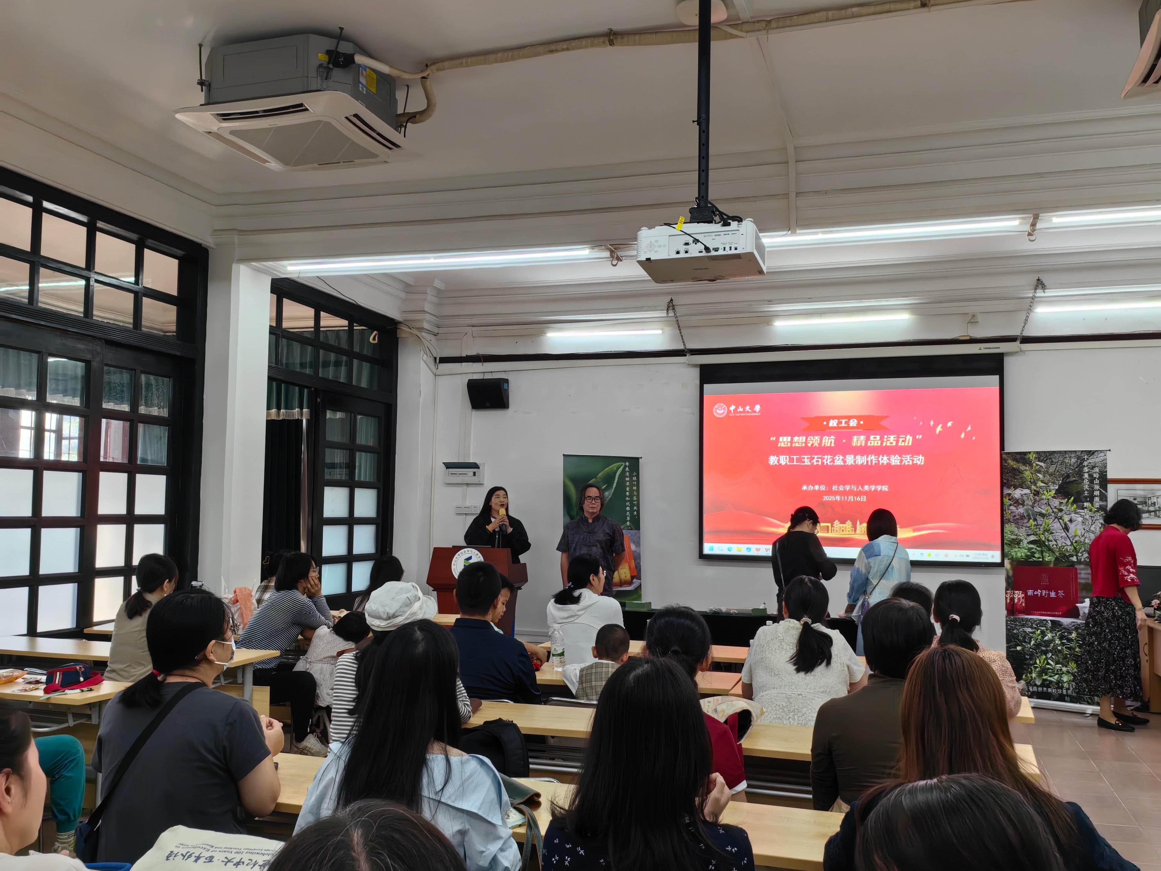 为深入贯彻文化育人理念,丰富校园文化生活,促进教职工之间的交流互动由校工会主办、太阳成集团tyc33455分工会承办的“思想领航·精品活动”之教职工玉石花盆景制作体验活动(第二期),于2025年11月16日在广州校区南校园马丁堂顺利举行并圆满落幕。作为校园文化建设的重要组成部分,本次活动以沉浸式非遗文化体验为载体,为教职工搭建了一个陶冶情操、舒缓压力的优质平台,吸引了全校约五十位在职教职工及其家属积极参与。现场气氛温馨融洽,参与者热情高涨,活动取得了超出预期的良好效果。 |